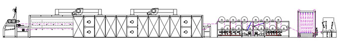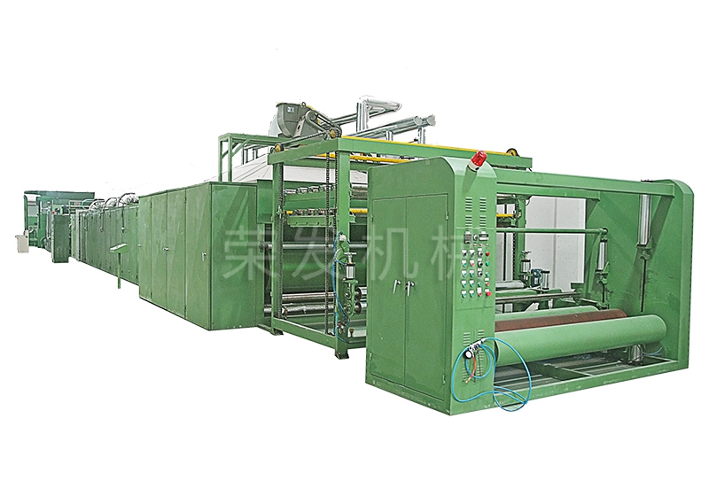 The foam dipped non-woven fabric production line is used for medical non-woven fabrics, chef hats, interlining fabrics, embroidery interlining fabrics, filter fabrics, non-woven fabrics for cable packages, embroidery packaging, and polyester non-woven fabrics.